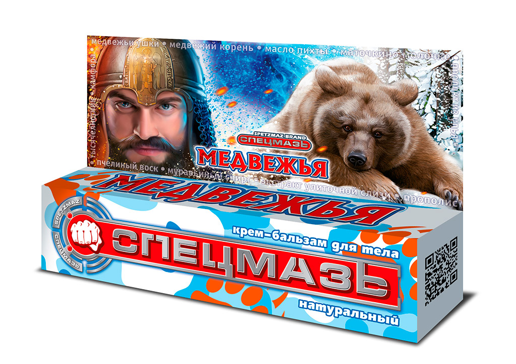 для растирания тела в области суставов и позвоночника. Кокосовое масло, Цетеариловый спирт, Касторовое масло, Глицерин, Полисорбат 80, Полиэтиленгликоль 400, Эуксил РЕ 9010, Эфирное масло пихты, Ланолин, Карбопол 21, Триэтаноламин, Экстракт медвежьего корня, Экстракт толокнянки обыкновенной (медвежьи ушки), Облепиховое масло, Экстракт прополиса, Экстракт тысячелистника, ВНТ, Муравьиный спирт, Вода очищенная. Активные компоненты и их свойства: Пихты сибирской масло эфирное - оказывает общеукрепляющее воздействие и эффективно стимулирует иммунитет; устраняет нарушения кровообращения; является одним из самых сильных болеутоляющих масел; применяют также при артрозах, артритах, невралгиях и остеохондрозах, ревматизме и при подагре; является лучшим маслом при переохлаждении и обморожении; оказывает бактерицидное действие при: - порезах; - ссадинах; - ранках; - царапинах; - потёртостях; - трещинках; - травмах; - ушибах;