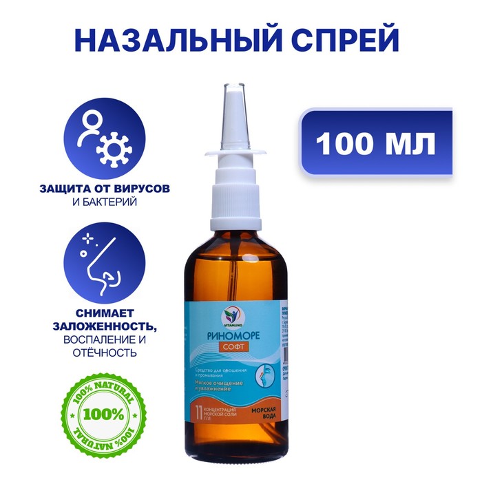 Производитель: Vitamuno; Габариты: 4 x 4 x 16,5; Страна: Россия; В боксе: 48 шт; Состав: См. на упаковке; Материалы: см. на упаковке; Фасовка: по 1 шт; Индивидуальная упаковка: Без упаковки; Сертификат: ЕАС; Вес, г/Объём, мл: 100; Показания: Насморк (ринит); Компоненты: Морская вода; Действие: Промывание носа Комплекс активных компонентов, входящих в состав средства, способствует гигиеническому очищению, увлажнению слизистых оболочек при раздражении и сухости, в том числе в условиях чрезмерно сухого воздуха. Средство обладает антисептическим эффектом (содержит антисептик бензалкония хлорид). Способ применения: орошать слизистые 4-8 раз в сутки или чаще при необходимости. После процедуры необходимо дать жидкости свободно стечь, вытирая гигиенической салфеткой.