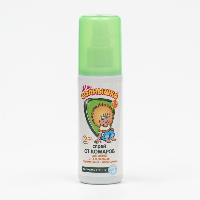 Безопасный состав разработан специально для малышей с 3-х месяцев. Подходит взрослым. Разрешено использовать женщинам в период беременности. Эффективно защищает от укусов комаров и других летающих насекомых (москитов, мокрецов, мошек). Не оставляет следов на одежде, обладает приятным запахом, не впитывается в кожу.Состав: Этилбутилцетил аминопропионат (IR 3535) -10%, а также пропиленгликоль, эмульгатор, консервант, D-пантенол,отдушка, аллантоин, динатрий ЭДТА, кислота лимонная, вода. Рекомендации по применениюРаспылить средство на ладонь и обработать открытые участки лица и тела, не втирая. Для обработки одежды распылить на нее средство на расстоянии 10-15 см. Время защитного действия до 2-х часов. При необходимости повторить.