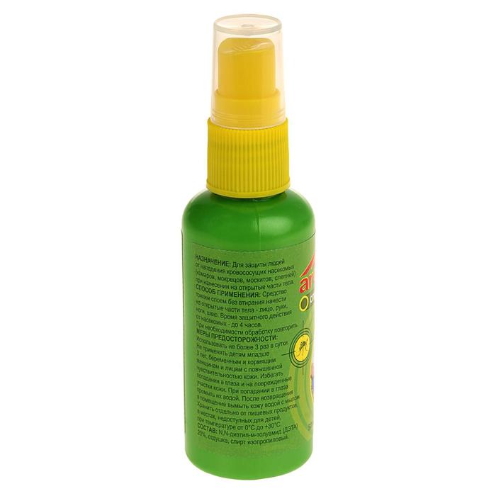 Описание:Аэрозоль (репеллентный) от комаров ARGUS предназначен для защиты людей от кровососущих насекомых (комаров, мошек, слепней, мокрецов, москитов, блох) при нанесении на открытые части тела и на одежду. Класс эффективности - высший. Время защитного действия при нанесении на кожу - более 4 часов даже при высокой численности насекомых, при нанесениии на одежду и изделия из ткани - до 20 суток.Состав: М, М-диэтилтолуамид(18%), пропиленгликоль, отдушка, углеводородный пропеллент, спирт изопропиловыйСпособ применения: средство тонким слоем без втирания нанести на открытые части тела - лицо, руки, ноги, шею. Время защитного действия от насекомых - до 4 часов. При необходимости повторить.
