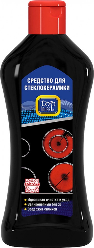 TOP HOUSE Средство с силиконом для защиты и чистки стеклокерамики. Идеально очищает, защищает и придает великолепный блеск. Всегда безупречный внешний вид бытовой техники. Одобрено к использованию компанией SCHOTT, крупнейшим производителем стеклокерамики торговой марки CERAN.