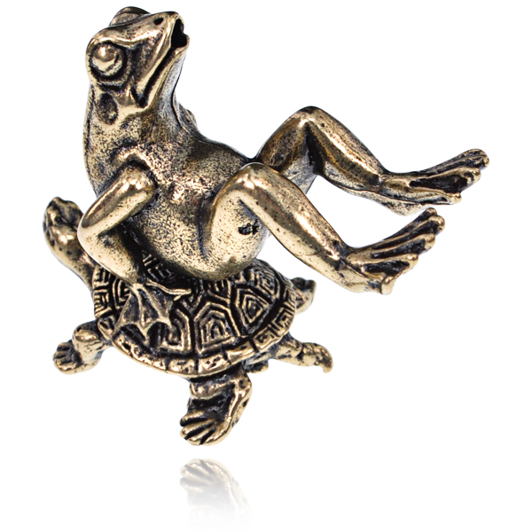 ST005 Фигурка Лягушка на черепахе, 3,5х3х1,5см