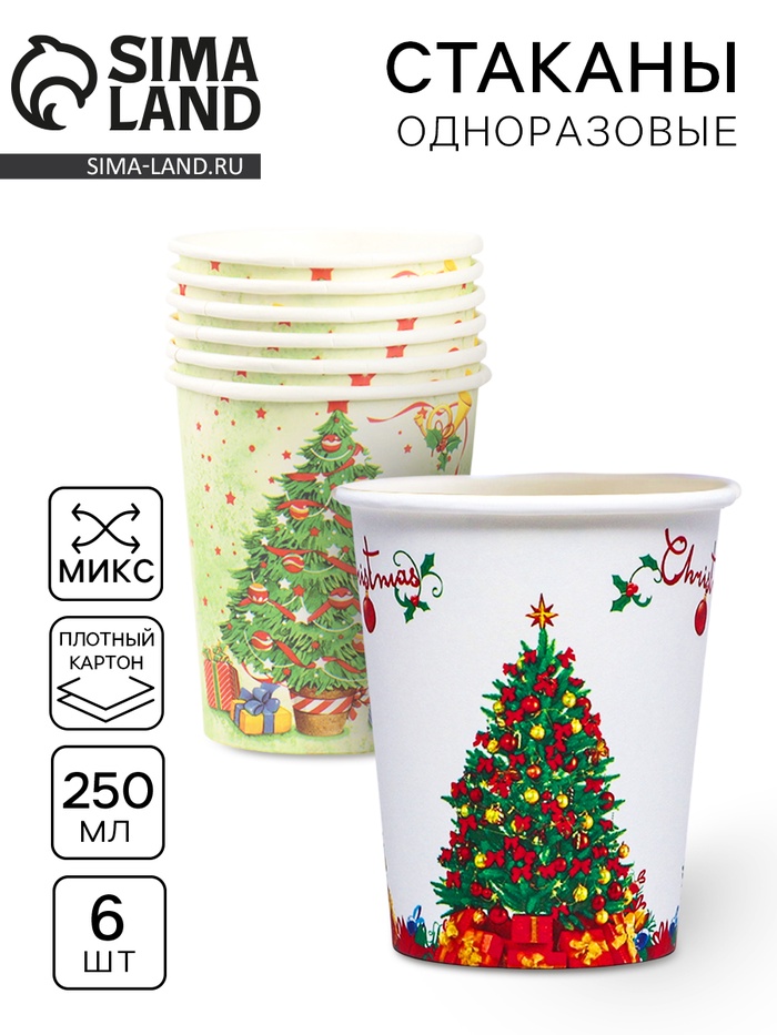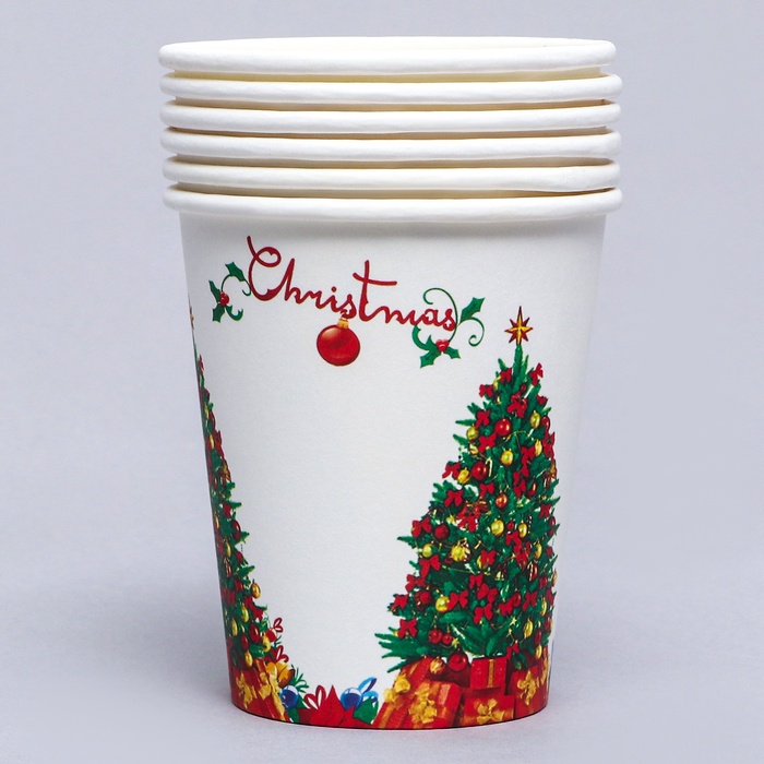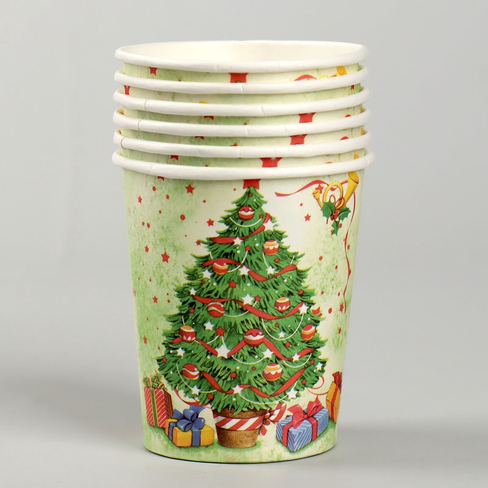 Стаканы бумажные одноразовые «Новогодняя ёлочка», 6 шт. МИКС