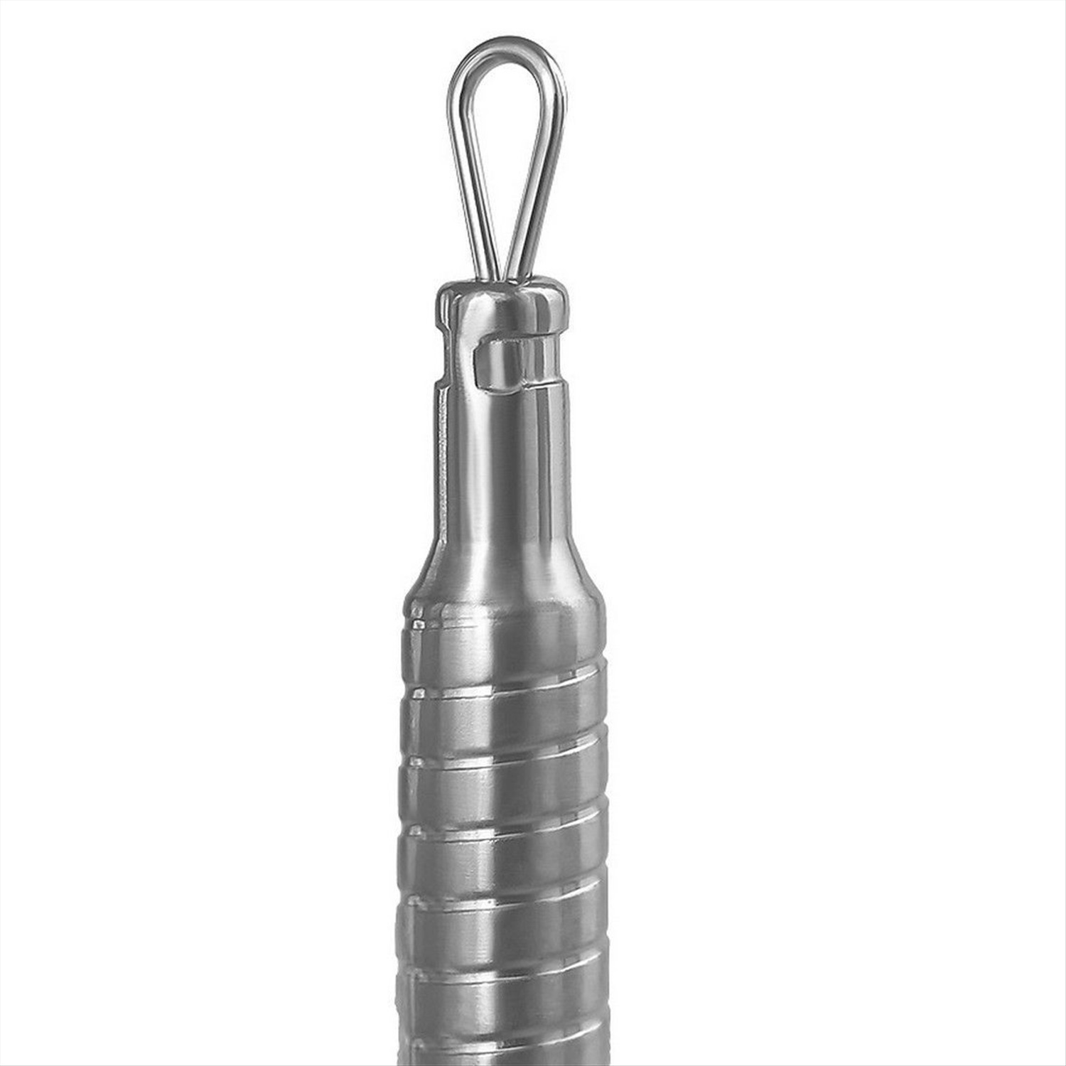 Рабочая часть «петля» имеет две формы и размера. Предназначена для механической чистки кожи в домашних условиях, отсутствие риска травмирования кожи, благодаря гладким, полированным краям рабочих частей, надежная фиксация инструмента в руке, за счет специальных насечек на ручке. Инструмент выполнен из нержавеющей стали.