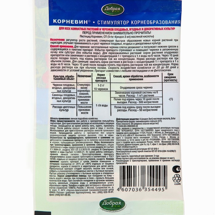 * улучшает развитие системы корнеобразования, укрепляет, обеспечивает здоровый рост для черенков плодовых, ягодных и декоративных культур.