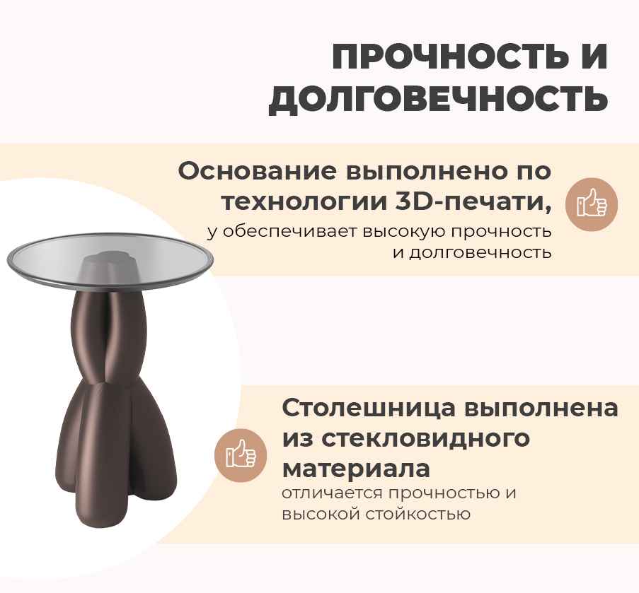 При изготовлении ОСНОВАНИЯ СТОЛИКА используется технология, которая позволяет изготавливать изделие путём наслоения пластиковой нити на основе компьютерной 3D-модели. Благодаря такому подходу изделие выпускается с улучшенными свойствами и высокой прочностью.