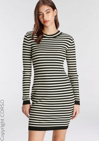 Artikelfarbe: schwarz-beig Marke: AJC Sortiment: Da. Kleider Größen-Kategorie: Normalgrößen Inverkehrbringer: AproductZ GmbH, Werner-Otto-Straße 1-7, 22179 Hamburg, Deutschland, E-Mail- customer-service@aproductz.com Strickkleid von AJC, Kuschelige Viskosemischung, Sehr figurbetonende Passform, In coolem Streifen-Look, Trendiger Look, Obermaterial: 50% Viskose, 26% Polyamid, 24% Polyester, N-Gr