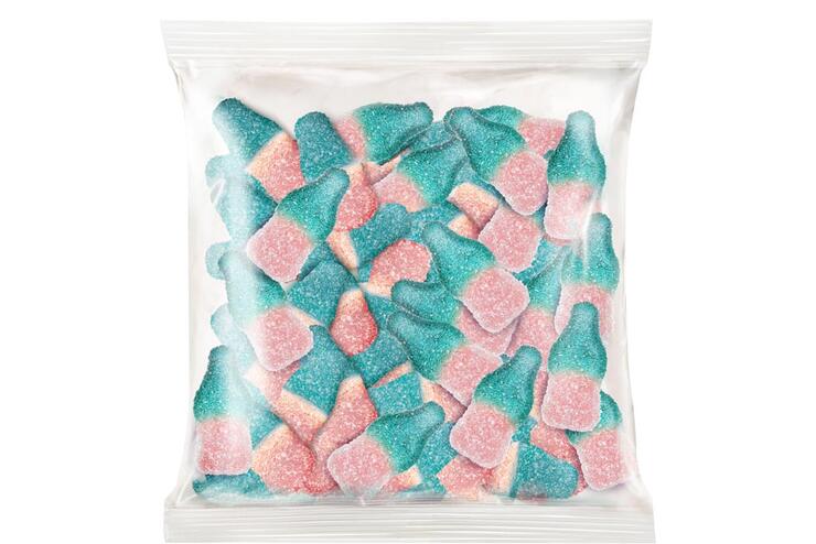 Мармелад в форме забавных бутылочек в кислой обсыпке.