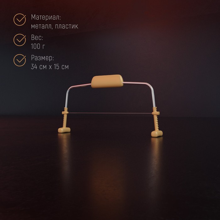 Габариты: 32,5 x 16 x 6 Страна: Китай В боксе: 144 шт Состав: Пластик, коррозионностойкая сталь Материалы: пластик, Коррозионностойкая сталь Фасовка: по 1 шт Индивидуальная упаковка: Пакет Габариты товара: 34 см × 15 см × 6 см Сертификат: СТР Набор: Нет Цвет: Бежевый Материал ручки: Пластик Материал: Нержавеющая сталь Материал лезвия: Нержавеющая сталь Аккуратная нарезка бисквитной основы торта — важная и кропотливая процедура. Работу облегчит профессиональный нож-струна. Как им пользоваться?