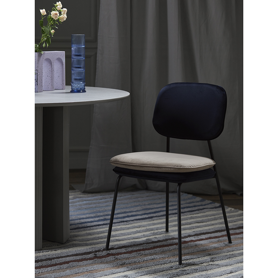 Коллекция: Pea Название товара: Стул Pea, велюр, темно-синий/бежевый Артикул: BB0000616 Материал: 100% полиэстер, фанера, пенополиуретан, железо Цвет: бежевый/темно-синий Вес: 6200 гр Размеры в упаковке (ШхГхВ): 60 х 93 х 44 см Размеры без упаковки (ШхГхВ): 49,5 х 49 х 82 см Максимальная нагрузка: 150 кг Стул Pea с мягкой обивкой из бархатистого велюра станет настоящим украшением интерьера и идеальным выбором для ценителей качественной и элегантной мебели. Особенности и преимущества: - Обивка из велюра создает приятные тактильные ощущения, смотрится презентабельно, придавая мебели изысканный вид. - Удобное сиденье с наполнителем из пенополиуретана и спинка с мягкой обивкой обеспечивают комфортную посадку. - Ножки из железа имеют порошковое покрытие, которое защищает их поверхность от коррозии, потускнения цвета и механических повреждений. - Стабильная и прочная конструкция делает стул устойчивым, надежным и долговечным. - Дизайн актуален для классических и современных стилевых направлений. Материалы: 100% полиэстер, пенополиуретан, фанера (береза), железо. Размеры: 49,5х49х82 см. Высота сиденья: 48 см. Ширина сиденья: 47 см. Глубина сиденья: 45 см. Высота спинки: 29,5 см. Ширина спинки: 30 см. Цвет: темно-синий/бежевый. Максимальная нагрузка: 150 кг. Комментарии к товару