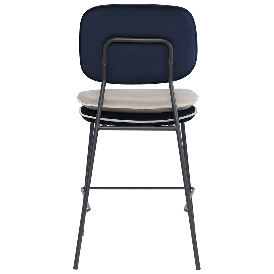 Бренд: Bergenson Bjorn Коллекция: Pea Название товара: Стул полубарный с контрастным кантом Pea, велюр, темно-синий/бежевый Артикул: BB0000696 Материал: 100% полиэстер, фанера, пенополиуретан, железо Цвет: бежевый/темно-синий Вес: 8830 гр Размеры в упаковке (ШхГхВ): 53 х 103,5 х 51 см Размеры без упаковки (ШхГхВ): 48,7 х 52,1 х 96 см Максимальная нагрузка: 150 кг