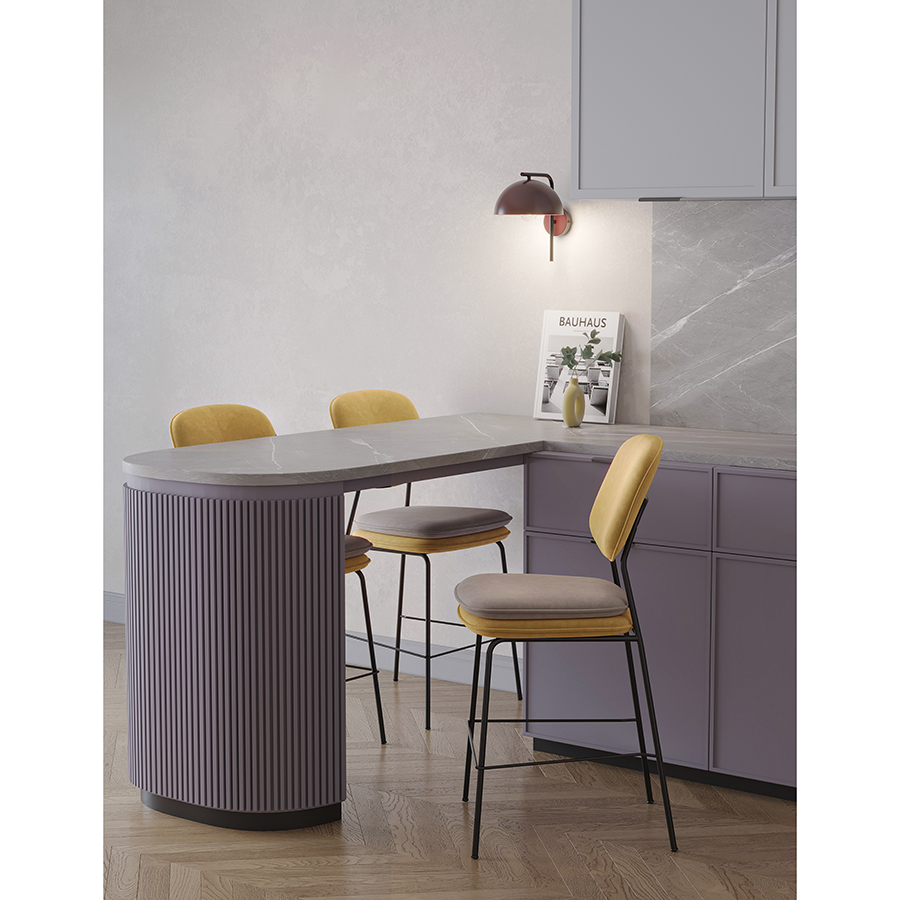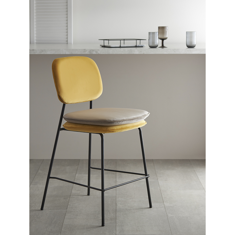 Коллекция: Pea Название товара: Стул полубарный с контрастным кантом Pea, велюр, желтый/бежевый Артикул: BB0000693 Материал: 100% полиэстер, фанера, пенополиуретан, железо Цвет: бежевый/желтый Вес: 8830 гр Размеры в упаковке (ШхГхВ): 53 х 103,5 х 51 см Размеры без упаковки (ШхГхВ): 48,7 х 52,1 х 96 см Максимальная нагрузка: 150 кг Стул полубарный Pea с контрастным кантом и мягкой обивкой из бархатистого велюра станет настоящим украшением интерьера и идеальным выбором для ценителей качественной и элегантной мебели. Особенности и преимущества: - Обивка из велюра создает приятные тактильные ощущения, смотрится презентабельно, придавая мебели изысканный вид. - Удобное сиденье с наполнителем из пенополиуретана и спинка с обивкой обеспечивают комфортную посадку. - Ножки из железа имеют порошковое покрытие, которое защищает их поверхность от коррозии, потускнения цвета и механических повреждений. - Стабильная и прочная конструкция делает стул устойчивым, надежным и долговечным. - Дизайн актуален для классических и современных стилевых направлений. Материалы: 100% полиэстер, пенополиуретан, фанера (береза), железо. Размеры: 48,7х52,1х96 см. Высота сиденья: 62 см. Ширина сиденья: 48 см. Глубина сиденья: 46 см. Высота спинки: 29,5 см. Ширина спинки: 43 см. Цвет: желтый/бежевый. Максимальная нагрузка: 150 кг. Комментарии к товару
