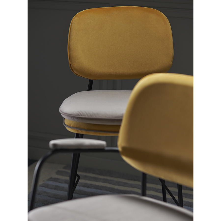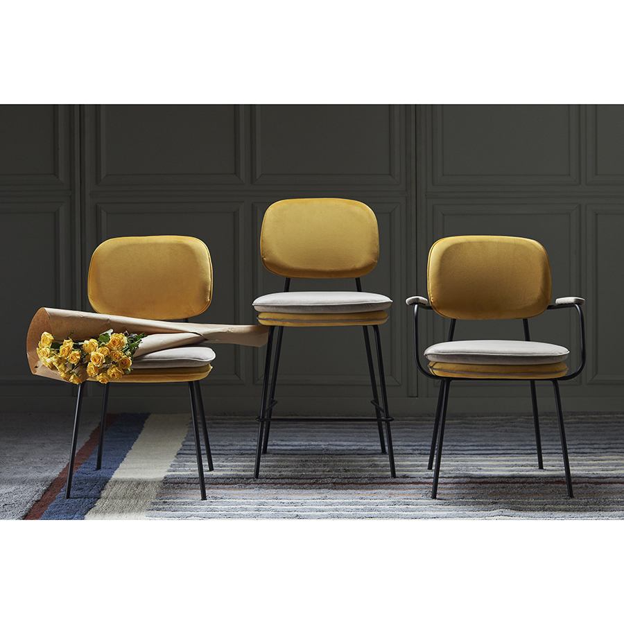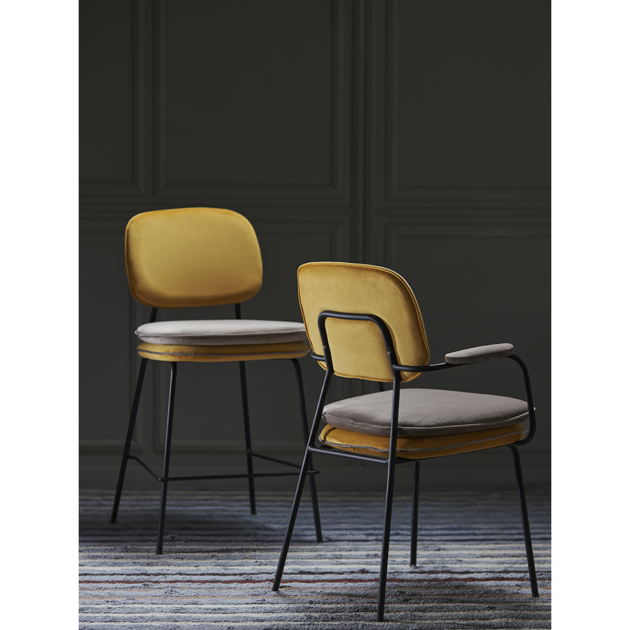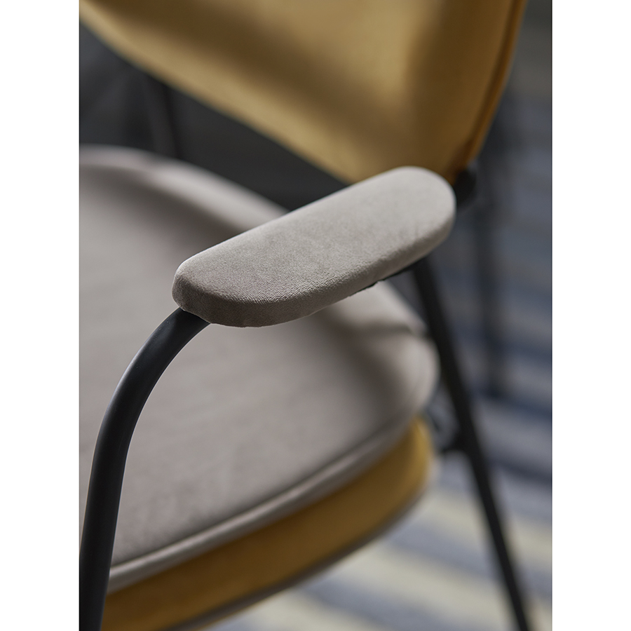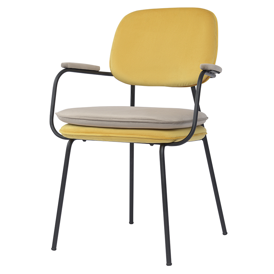 Коллекция: Pea Название товара: Стул с подлокотниками Pea, велюр, желтый/бежевый Артикул: BB0000622 Материал: 100% полиэстер, фанера, пенополиуретан, железо Цвет: бежевый/желтый Вес: 8550 гр Размеры в упаковке (ШхГхВ): 56 х 87 х 60 см Размеры без упаковки (ШхГхВ): 49,5 х 59 х 82,5 см Максимальная нагрузка: 150 кг Стул Pea с подлокотниками и мягкой обивкой из бархатистого велюра станет настоящим украшением интерьера и идеальным выбором для ценителей качественной и элегантной мебели. Особенности и преимущества: - Обивка из велюра создает приятные тактильные ощущения, смотрится презентабельно, придавая мебели изысканный вид. - Удобное сиденье с наполнителем из пенополиуретана, спинка и подлокотники с мягкими накладками обеспечивают комфортную посадку. - Ножки из железа имеют порошковое покрытие, которое защищает их поверхность от коррозии, потускнения цвета и механических повреждений. - Стабильная и прочная конструкция делает стул устойчивым, надежным и долговечным. - Дизайн актуален для классических и современных стилевых направлений. Материалы: 100% полиэстер, пенополиуретан, фанера (береза), железо. Размеры: 49,5х59х82,5 см. Высота сиденья: 48,5 см. Ширина сиденья: 48 см. Глубина сиденья: 46 см. Высота спинки: 29,5 см. Ширина спинки: 43 см. Цвет: желтый/бежевый. Максимальная нагрузка: 150 кг. Комментарии к товару