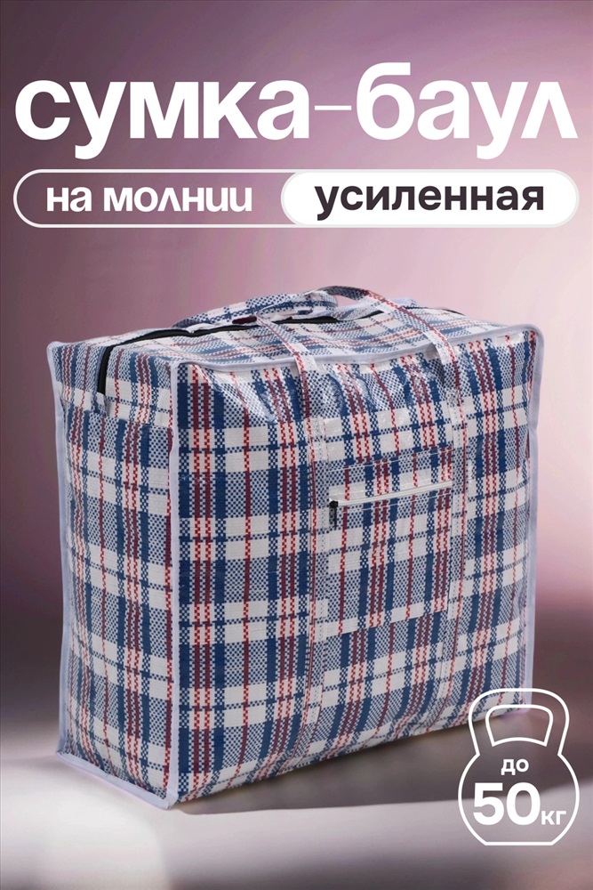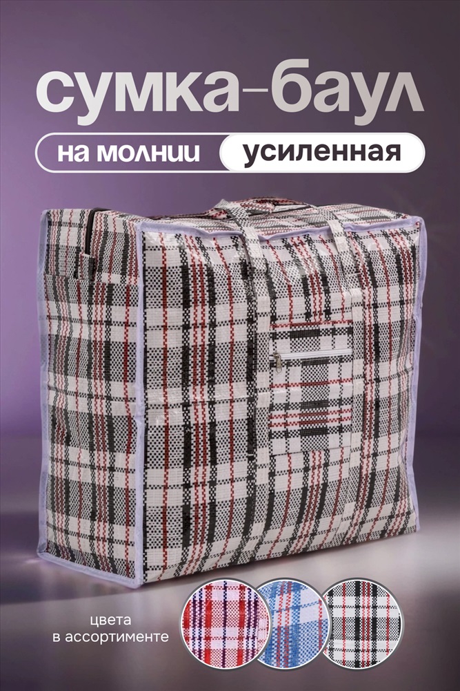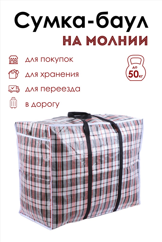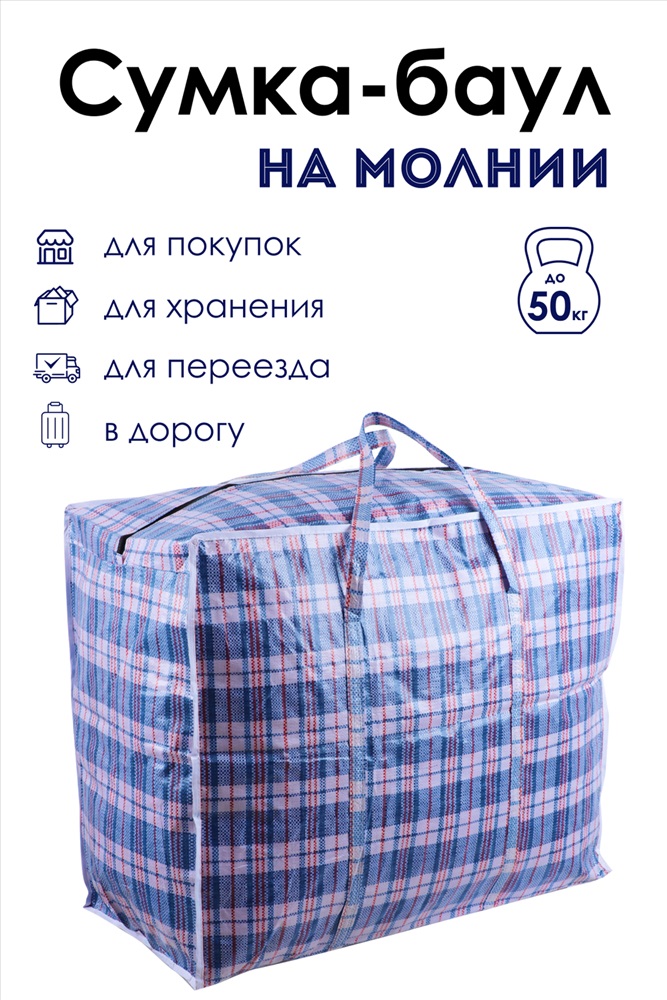Сумка хозяйственная на молнии первого сорта сделана из износостойкой полипропиленновой ткани, по технологии корзиночного плетения волокон. Имеет два таких слоя по всей площади. Благодаря этому внутрь хозяйственной сумки баул не проникает грязь и влага, она очень прочная на разрыв. Применяется как упаковка для перевозки товаров, транспортировки грузов. Незаменимы в торговых точках, магазинах, на ярмарках и рынках. Застежка - молния.