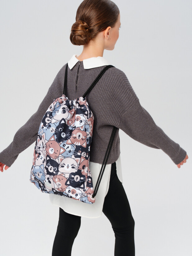 Сумка-мешок для сменной обуви из прочной водонепроницаемой ткани для девочки. Мешок для сменки для школьницы с вместительным отделением, затягивающимся двумя шнурками. Дополнительный боковой карман застегивается на молнию. Размер мешка 34*44*2 см. Это отличный вариант для школы и детского садика. В него можно складывать не только сменную обувь, но и спортивную одежду для физкультуры и секций, брать в путешествия. Он легкий и компактный. К мешку для сменки можно подобрать рюкзак и пенал в едином дизайне.