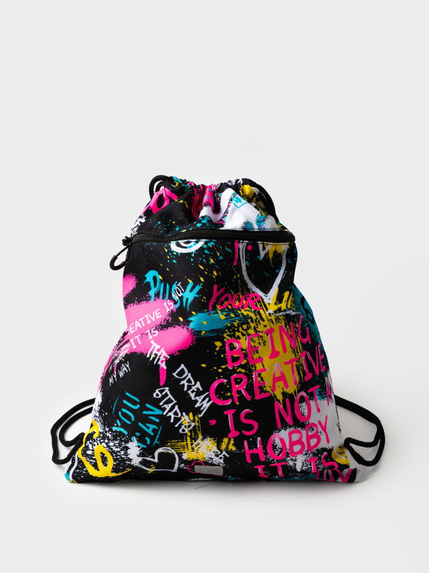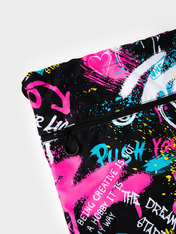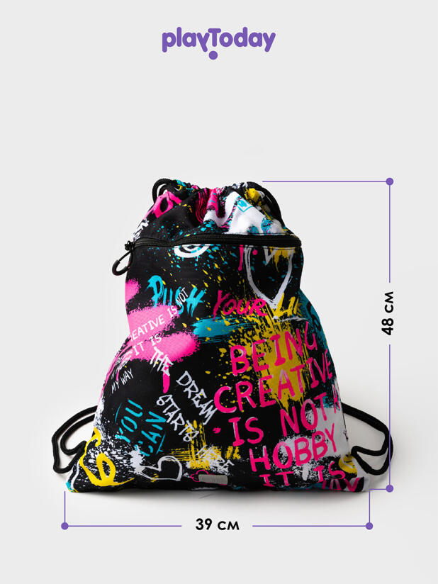 Сумка-мешок для сменной обуви из прочной водонепроницаемой ткани для девочки подростка. Мешок для сменки для школьницы с вместительным отделением, затягивающимся двумя шнурками. Дополнительный внешний карман застегивается на молнию. Размер мешка 39*48 см. Это отличный вариант для школы и детского садика. В него можно складывать не только сменную обувь, но и спортивную одежду для физкультуры и секций, брать в путешествия. Он легкий и компактный. К мешку для сменки можно подобрать рюкзак и пенал в едином дизайне.