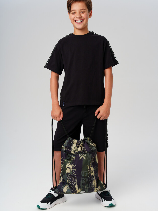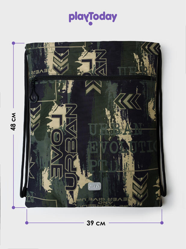 Сумка-мешок для сменной обуви из прочной водонепроницаемой ткани для мальчика подростка. Мешок для сменки для школьника с вместительным отделением, затягивающимся двумя шнурками. Дополнительный внешний карман застегивается на молнию. Размер мешка 39*48 см. Это отличный вариант для школы и детского садика. В него можно складывать не только сменную обувь, но и спортивную одежду для физкультуры и секций, брать в путешествия. Он легкий и компактный. К мешку для сменки можно подобрать рюкзак и пенал в едином дизайне.