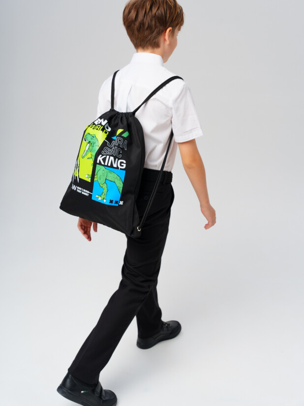 Сумка-мешок для сменной обуви из прочной водонепроницаемой ткани для мальчика подростка. Мешок для сменки для школьника с вместительным отделением, затягивающимся двумя шнурками. Дополнительный боковой карман застегивается на молнию. Размер мешка 34*44*2 см. Это отличный вариант для школы и детского садика. В него можно складывать не только сменную обувь, но и спортивную одежду для физкультуры и секций, брать в путешествия. Он легкий и компактный. К мешку для сменки можно подобрать рюкзак и пенал в едином дизайне.