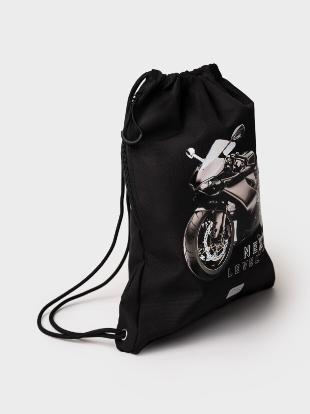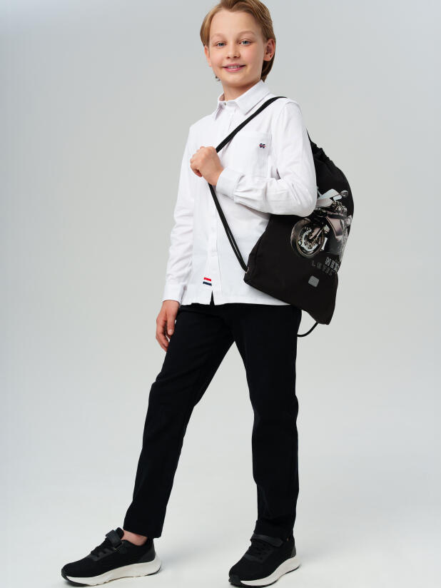 Сумка-мешок для сменной обуви из прочной водонепроницаемой ткани для мальчика подростка. Мешок для сменки для школьника с вместительным отделением, затягивающимся двумя шнурками. Дополнительный боковой карман застегивается на молнию. Размер мешка 34*44*2 см. Это отличный вариант для школы и детского садика. В него можно складывать не только сменную обувь, но и спортивную одежду для физкультуры и секций, брать в путешествия. Он легкий и компактный. К сумке можно подобрать рюкзак и пенал с единым дизайном