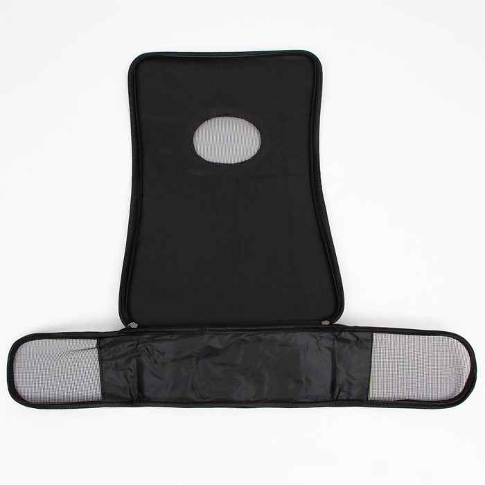 В дно переноски вшит плотный картон, который обеспечивает твердую основу и защищает животное от вибраций и ударов. Прозрачная сетка позволяет питомцу наблюдать за окружающим миром и получать достаточно свежего воздуха.