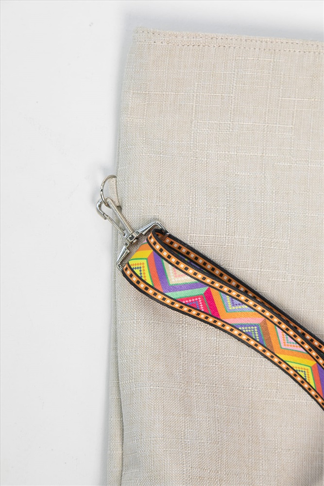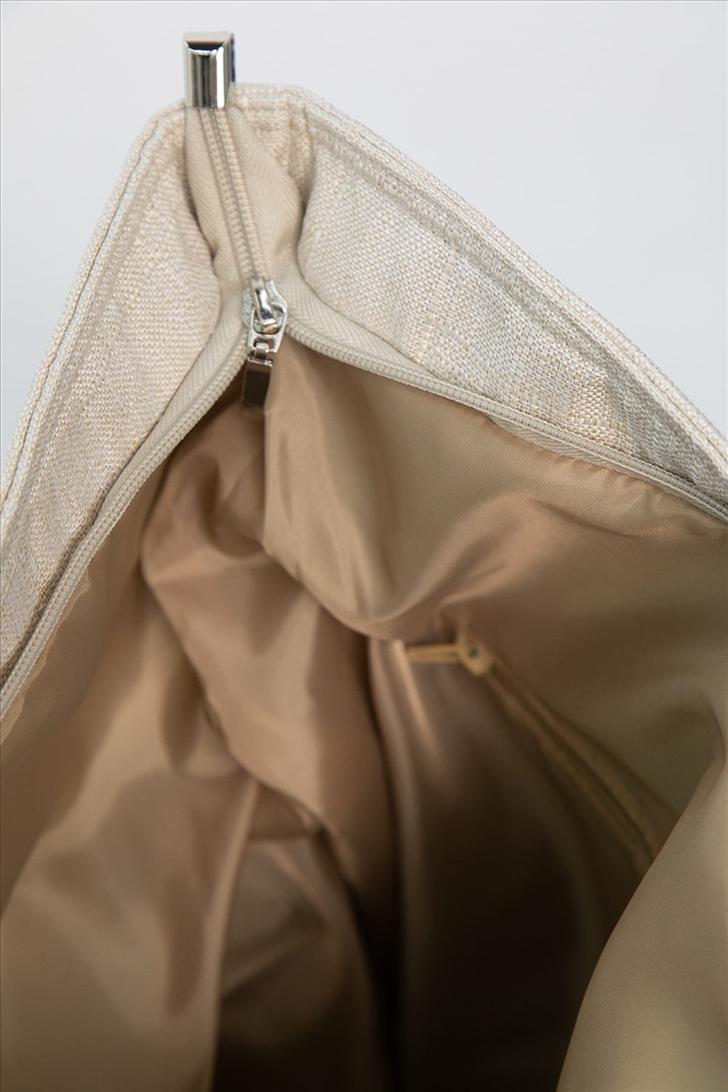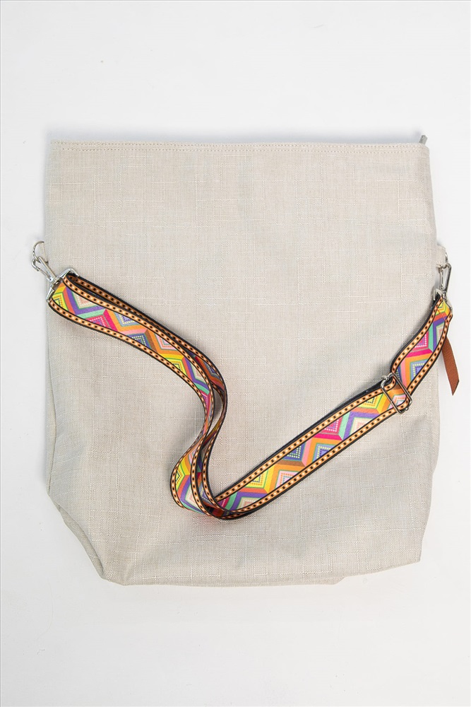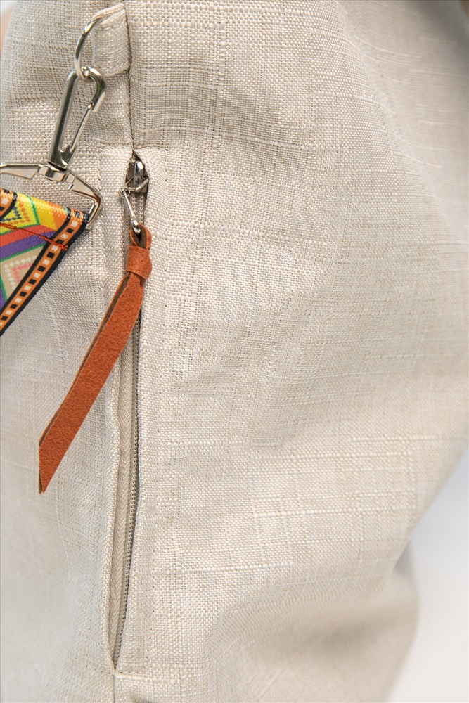 Универсальная модель сумки идеально сочетает в себе функциональность и стиль, что делает её незаменимой как на пляже, так и в повседневной жизни. Снаружи в заднем боковом шве вертикальный карман, в который легко помещается смартфон, очечник и кошелёк вместе взятые. Внутри на подкладке также имеется горизонтальный карман на молнии на задней стенке. Ремень-стропа длиной 1,35 см с регулятором длины делает сумку подходящей для женщин любого роста. Ремень-стропа съемный на вращающихся карабинах.