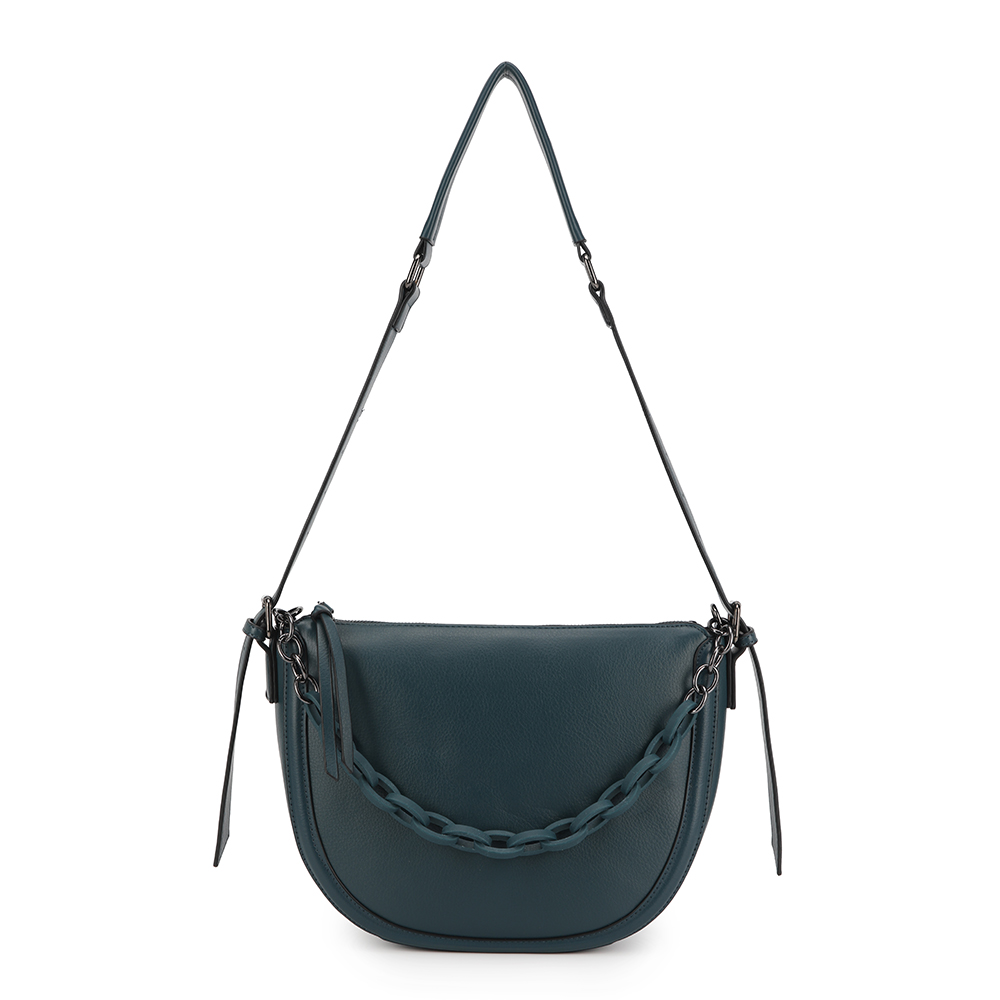 Стильная сумка на плечо Saint Miranda выполнена из экокожи зернистой текстуры . Основное отделение закрывается на молнию . Внутри 3 кармана для мелочей: открытый и 2 на молнии. На тыльной стороне расположен карман быстрого доступа на молнии. В качестве декора выступает цепочка с крупными звеньями, которая также может быть использована в качестве короткого ремня. В комплекте есть съемный плечевой ремень: длина - 117см, ширина - 2,5 см.
