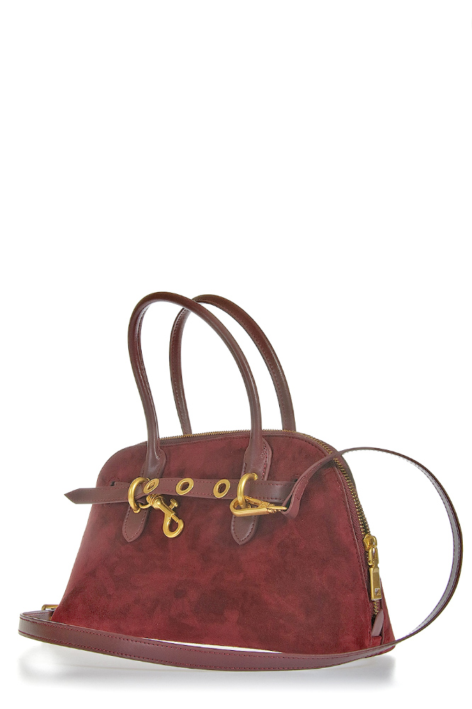 Цвет: Бордовый; Материал изделия: Натуральная замша; Материал подкладки: Натуральная кожа; Тип: Классическая сумка; Вид застёжки: Карабин; Назначение ремня: На плечо; Длина (см): 28; Высота (см): 16; Ширина (см): 10