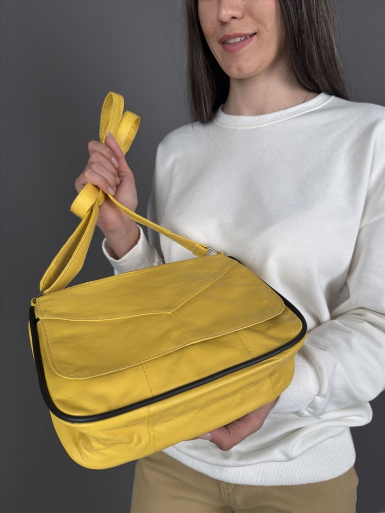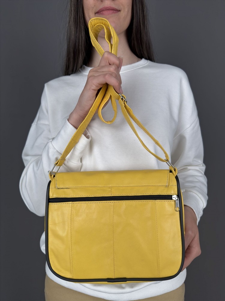 Страна: Турция; Акции: Товары со скидкой; Тип товара: Сумки; Тип кожи: Телячья; Тип: Женские; Производитель: Unvers leather istanbul, Turkey; Размер: средняя; Стиль ношения: на ремешке через плечо; Форма: мягкая; Выделка кожи: гладкая матовая; Цвет кожи: Желтый; Оттенок: ярко-желтый; Палитра цветов: TT-110; На складе: есть