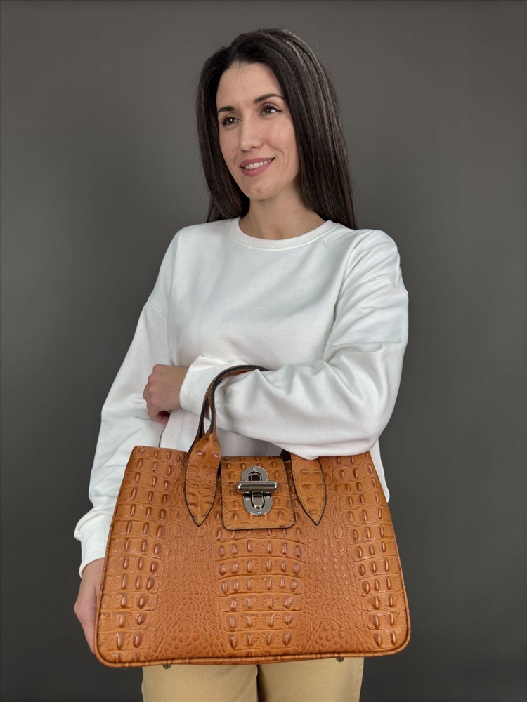 Страна: Италия; Акции: Товары со скидкой; Производитель: Pelletteria Luisa, Italy; Размер: большая; Стиль ношения: короткие ручки в руках; Форма: жесткая; Выделка кожи: тиснение под крокодила; Цвет кожи: Рыжий; Оттенок: рыжий c тиснением под крокодила; Упаковка: Пакет тканевый L, 40x40 см; Палитра цветов: TB-0005 Caimano