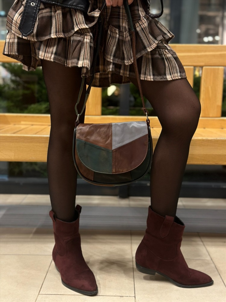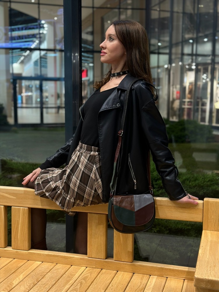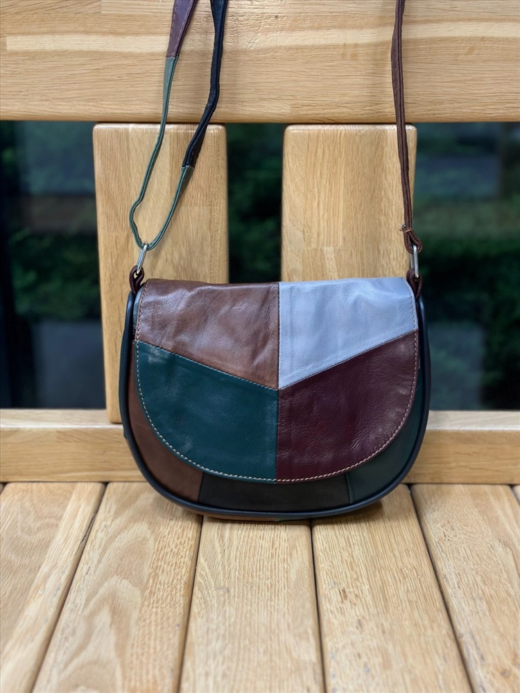 Страна: Турция; Производитель: Unvers leather istanbul, Turkey; Размер: маленькая; Стиль ношения: на ремешке через плечо; Форма: мягкая; Выделка кожи: гладкая матовая; Цвет кожи: Мультиколор; Оттенок: цветной темный пэчворк; Палитра цветов: TT-115 Размеры: длина: 22 см \tвысота: 20 см \tширина: 7,5 см Описание: Небольшая аккуратная сумка кросс-боди из натуральной кожи, производства Турция. Выполнена в стиле «Пэчворк» - из кусочков разного цвета, тональность темные цвета. Цвета не имеют строгого соответствия в каждой конкретной сумке, каждый рисунок индивидуален.Мягкая прочная кожа, очень легкая. Закрывается на молнию сверху, дополнительно на клапан с магнитной застежкой. Внутри: 1 отделение, на боковой стенке 1 карман на молнии. На лицевой стороне снаружи карман на молнии. На задней стенке снаружи – большой карман на молнии. Плечевой ремешок – 100 см, регулируется по длине.