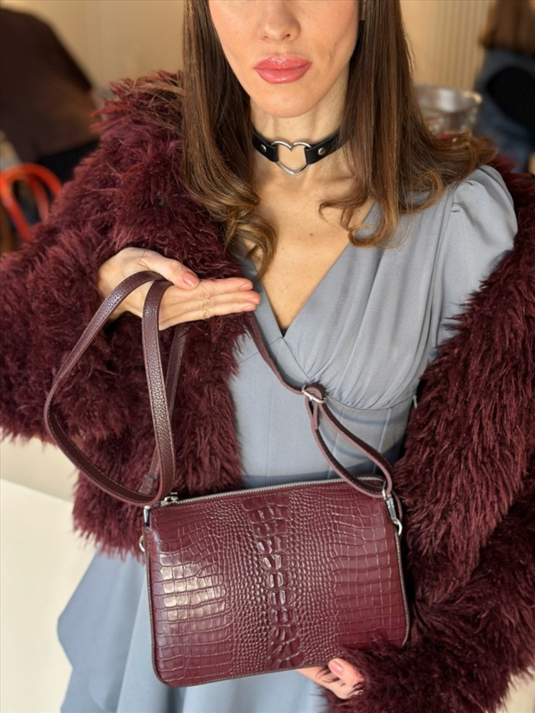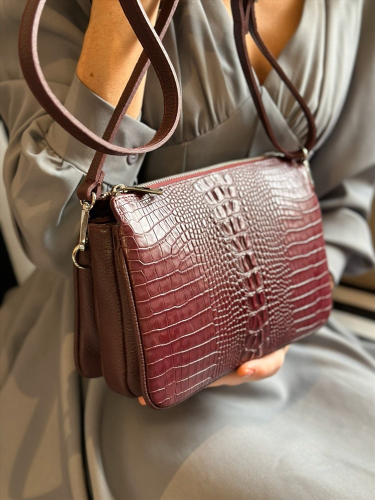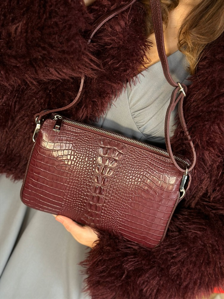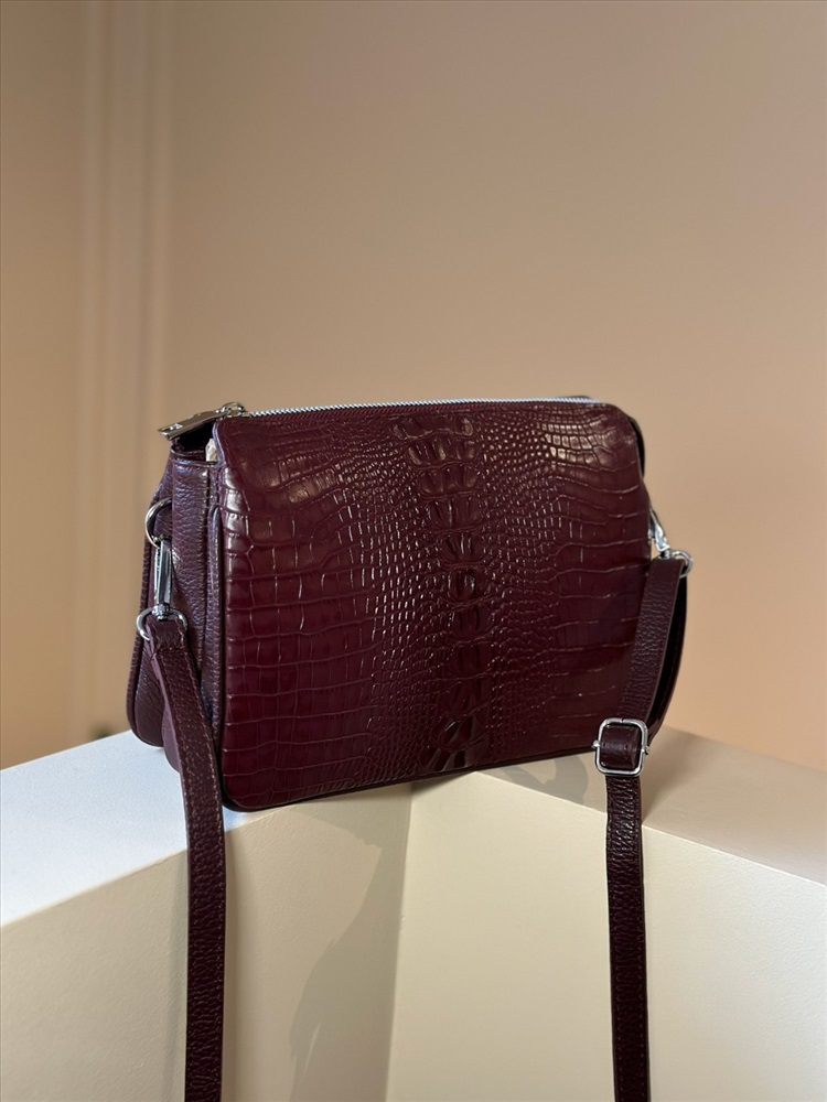 Страна: Италия; Производитель: Pelletteria Luisa, Italy; Размер: средняя; Стиль ношения: на ремешке через плечо; Форма: мягкая; Выделка кожи: тиснение под крокодила; Цвет кожи: Бордовый; Оттенок: бордовый , тиснение "Крокодил"; Упаковка: Пакет тканевый L, 40x40 см; Палитра цветов: TB-2204