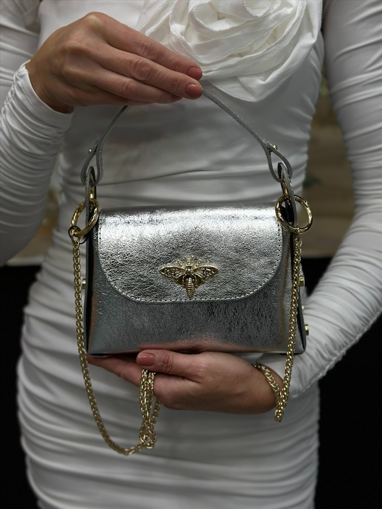 Акции: Товары со скидкой Производитель: Pelletteria Luisa, Italy Размер: маленькая Стиль ношения: на ремешке через плечо Форма: жесткая Выделка кожи: зернистая износостойкая Цвет кожи: Серебряный Оттенок: сияющее серебро Палитра цветов: TB-101028