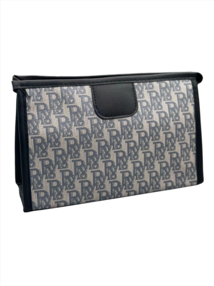 Элегантная женская косметичка из высококачественного полиуретана — идеальный аксессуар для хранения косметики и мелочей. Классический серый цвет и золотистая фурнитура делают модель универсальной и стильной.
