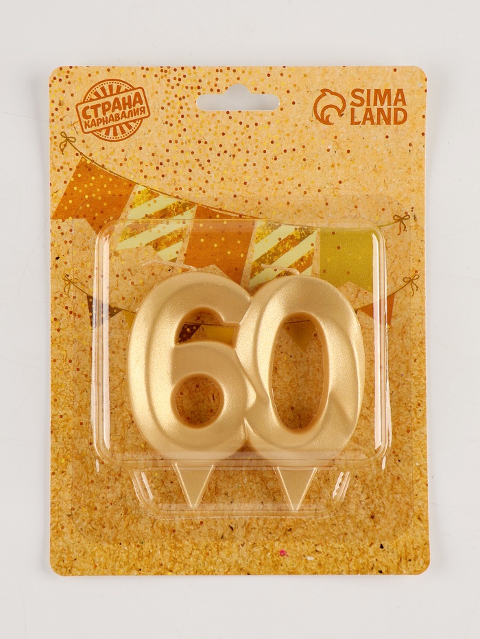 Производитель: Страна Карнавалия; Габариты: 15,5 x 11,5 x 1,5; Страна: Россия; В боксе: 40 шт; Состав: Парафин; Материалы: парафин; Фасовка: по 1 шт; Индивидуальная упаковка: Блистер; Сертификат: Не подлежит сертификации; Набор: Нет; Цвет: Золотистый; Для кого: Унисекс; В наборе, шт.: 1; Высота свечи без шпажки, см: 6,5; Высота свечи, см: 7,8; Форма свечи: Цифры; Цифра: 60; Состав: Парафин