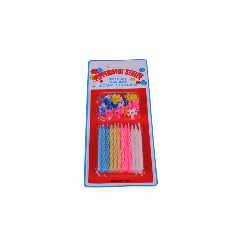 легко втыкаются в крем.Материал: воск, пластик. Размер свечи около: 6 см. Набор состоит из 24 свечей и 24 держателей.