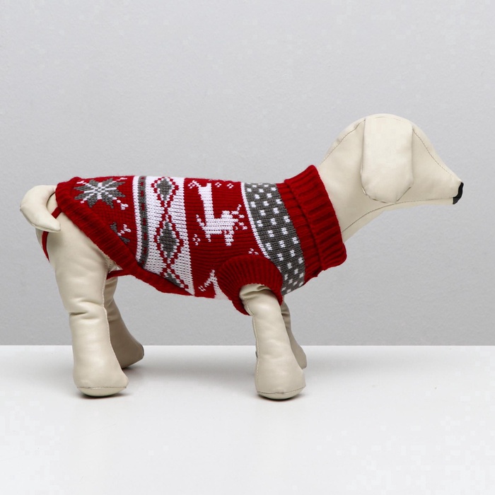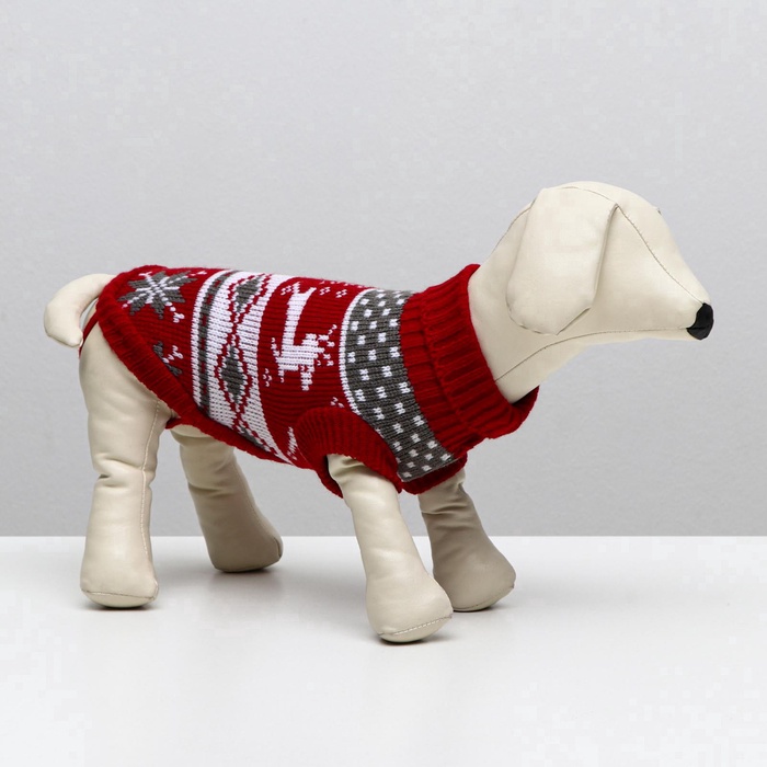 Свитер «Бегущие олени», L (ДС 29, ОШ 29, ОГ 29-49 см), бордовый