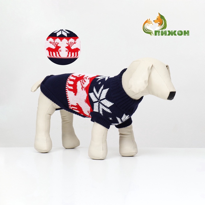 Производитель: Пижон; Габариты: 25 x 18 x 1; Состав: Полиэстер; Сезон: Зима, Демисезон; Длина спинки, см: 30; Обхват шеи, см: 30; Обхват груди, см: 45; Пол: Самец, Самка; Фиксированная цена: Да; Страна: Китай; В боксе: 100 шт; Материалы: полиэстер; Фасовка: по 1 шт; Индивидуальная упаковка: Пакет; Сертификат: Не подлежит сертификации; Цвет: Синий; Тематика праздника: Новый год; Тип: Собака, Кот/Кошка; С подкладкой: Нет Свитер "Бегущие олени" для собак имеет уникальный новогодний дизайн, который придаст вашему питомцу особый вид во время праздников. Воротник на свитере не только добавляет стиль и элегантность, но и защищает шею собаки от холода и ветра. Он также может быть поднят или опущен в зависимости от погодных условий. Резиночки на задних лапках обеспечивают хорошую посадку и предотвращают сползание во время активных движений питомца. Это гарантирует, что свитер останется на месте и будет комфортным для вашей собаки во время прогулок или игр. Свитер выполнен из мягкого и теплого материала, который обеспечивает комфорт и защиту от холода. Он легко одевается и снимается благодаря своей эластичности. Такой наряд не только придаст вашему питомцу праздничный вид, но и защитит его от непогоды во время зимних прогулок. Свитер для животных не колется, хорошо держит форму и не деформируется после стирок. Можно стирать на деликатной стирке при температуре 30 градусов.