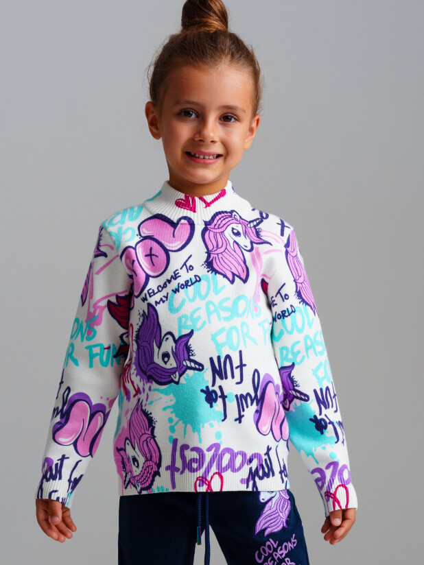 Свитер детский для мальчика. Модный свитер жаккардовой вязки с высоким содержанием вискозы. Вискоза хорошо поглощает влагу, отлично пропускают воздух. Изделия приятны к телу, и не вызывают раздражения. Модель из капсульной коллекции UNICORN KUROMI (ЮНИКОРН КОРОМИ). Соберите полный образ в едином стиле! Джемпер будет актуален для детского сада, в садик, для прогулок.