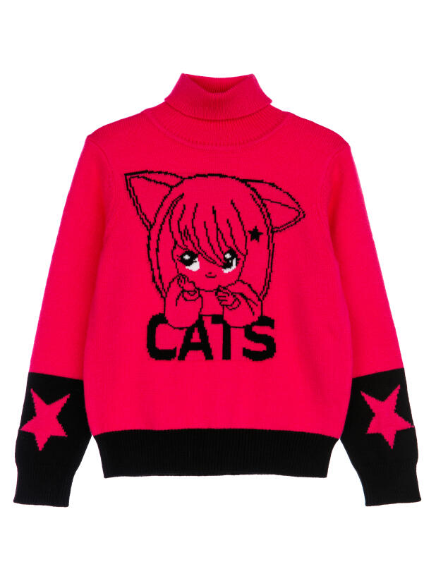 Свитер детский для девочки. Свитер из вязаного трикотажа с добавленим вискозы. Модный свитер жаккардовой вязки с высоким содержанием вискозы. Вискоза хорошо поглощает влагу, отлично пропускают воздух. Изделия приятны к телу, и не вызывают раздражения. Модель из капсульной коллекции CATS DREAM. Соберите полный образ в едином стиле!