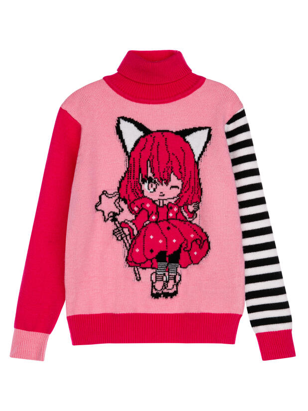 Свитер детский для девочки. Свитер из вязаного трикотажа с добавленим вискозы. Модный свитер жаккардовой вязки с высоким содержанием вискозы. Вискоза хорошо поглощает влагу, отлично пропускают воздух. Изделия приятны к телу, и не вызывают раздражения. Модель из капсульной коллекции CATS DREAM. Соберите полный образ в едином стиле!