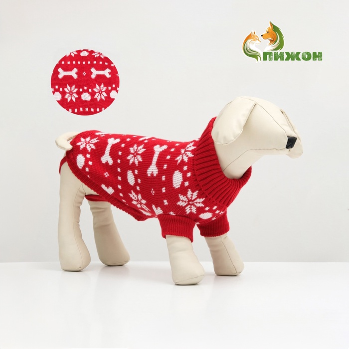 Свитер "Косточки-снежинки" для собак имеет уникальный новогодний дизайн, который придаст вашему питомцу особый вид во время праздников.