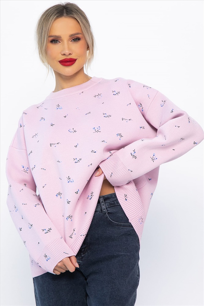 Цвет: розовый Состав : 60% вискоза, 35% полиэстер, 5% спандекс Материал : вязаный трикотаж Цвет : розовый Принт : печать цветы Силуэт : оверсайз Карманы : отсутствуют Подкладка : отсутствует Вид застежки : без застёжки Декоративные элементы : отсутствуют Длина : one size (42-54)-67 см Отснято с юбкой Ю11752 и с джинсами Б14602-4М Вязаный женский свитер с цветочным принтом — отличное дополнение к вашему гардеробу. Модель изготовлена из невероятно мягкого трикотажного материала. Свободный крой не ограничивает движения и придает стильный силуэт. Этот цвет прекрасно сочетается с большинством базовых вещей: будь то классические джинсы, комфортные брюки или любимые юбки и шорты. Цветочный принт добавляет образу утонченности и легкости, превращая обычный свитер в яркий акцент. Такой свитер станет незаменимым спутником в учебе, на работе, встречах с друзьями, прогулках на свежем воздухе и дома. Он позволяет создавать разнообразные образы, обеспечивая тепло и свободу движений каждый день. Сделайте свою жизнь уютнее и свежее с нашим новым свитшотом! Внимание! Рекомендуем ориентироваться на размерную сетку и выбирать свой привычный размер, согласно размерной таблице. *Допуск отклонения длины при массовом производстве 1-3 см является нормой. Уход за изделием: Ручная стирка или стирка в машине при температуре до 30 °C, деликатный режим. Не использовать отбеливатели. Разрешена глажка при температуре до 110 °C. При глажке использовать специальную насадку на подошве утюга, гладить с паром. Не замачивать и не выжимать. Стирать изделие наизнанку, отдельно от других вещей.