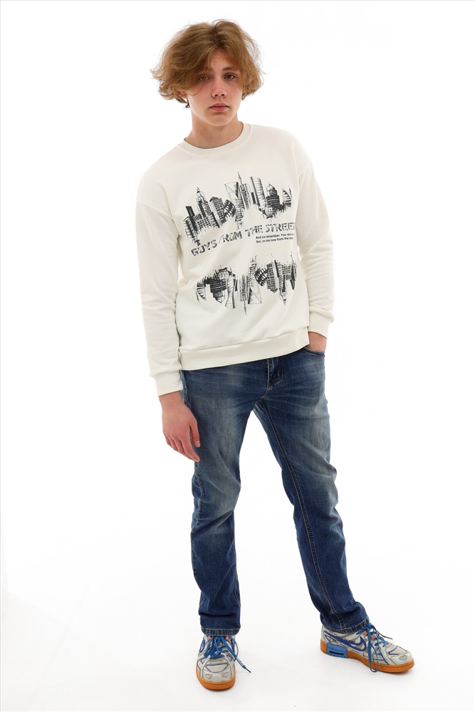 Заказывая эту уютную вещицу для ребенка, вы выбираете качественную одежду с принтом в виде надписи. Тонкий трикотаж делает свитшот универсальным для носки в любое время года. Набравший популярность среди подростков фасон отлично впишется в гардероб вашего подрастающего модника.