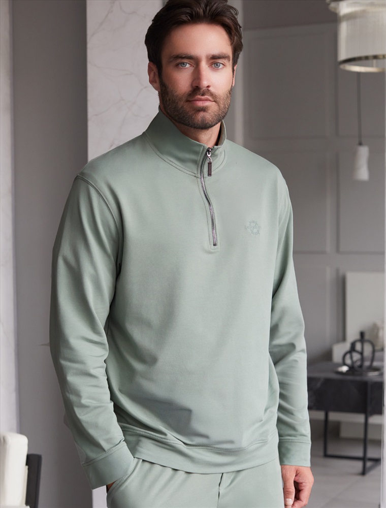 Уютный и стильный свитшот светло-оливкового цвета с воротом-стойкой на молнии - идеальный выбор для повседневного образа. Выполнен из премиального футера двухнитки с эластаном, Изнаночная сторона невероятно мягкая, что делает материал особенно приятным к телу. Благодаря эластичной структуре ткань хорошо тянется, сохраняет форму после длительной носки и обеспечивает свободу движений даже в самых активных буднях, а натуральный состав обеспечивает отличную воздухопррницаемость, позволяя коже дышать и не перегреваться.