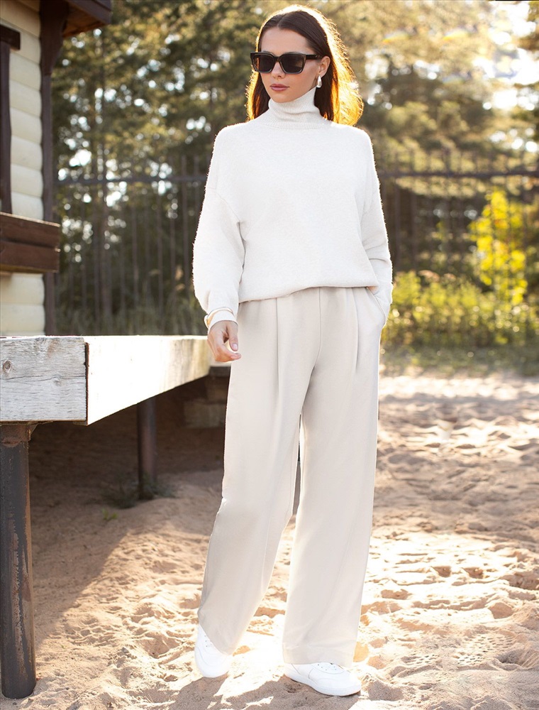 Свитер с классическим воротом выполнен из мягкой пряжи с кашемиром. Лаконичная модель свободного силуэта впишется в любой гардероб. Мягкая пряжа очень приятная к телу, поддержит комфорт на протяжении всего дня. Сочетается в костюме с брюками D38.013, D38.012 и юбкой D36.016