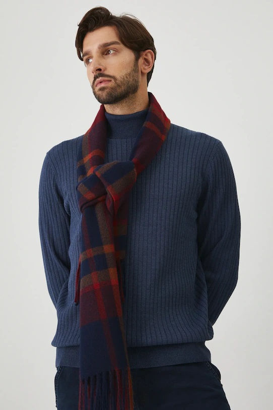 Szal z kolekcji Medicine. Model wykonany z wzorzystej tkaniny. - Model z ozdobnymi frędzlami.