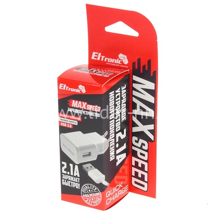 СЗУ ELTRONIC Max Speed Lightning (2100mAh) в коробке (белый) голова+кабель