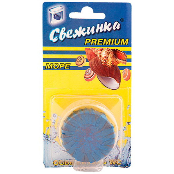Бренд: Свежинка; Бренд: СВЕЖИНКА; Индивидуальная упаковка: Блистер с подвесом; Серия: -; Материал: См. на упаковке; ШтрихКод: 4607023650265; Страна происхождения: Россия; Тип: Чистящее средство для ванной комнаты; Набор: Нет; Вид: Блок гигиенический подвисной; Вес (гр): 15; Отдушка: Море