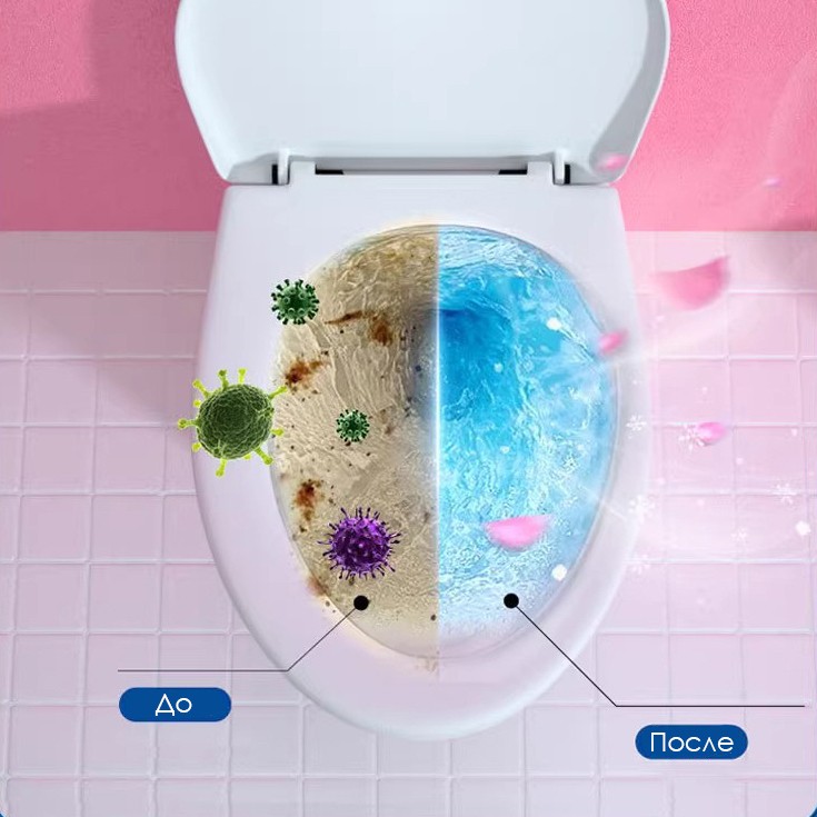 Способ применения: Просто бросьте одну таблетку в бачок унитаза, и она сама справится с задачей, обеспечивая длительное действие и приятный аромат.