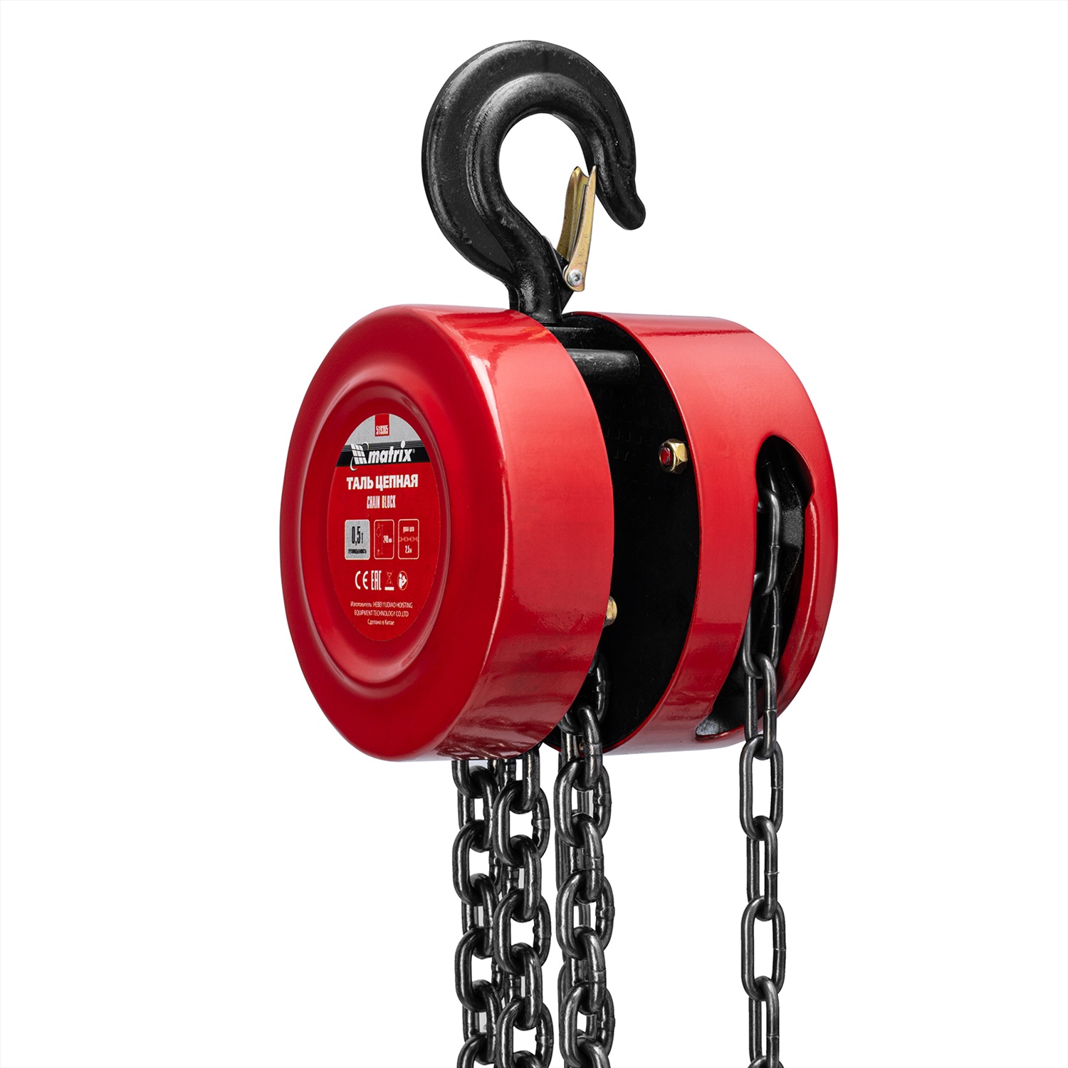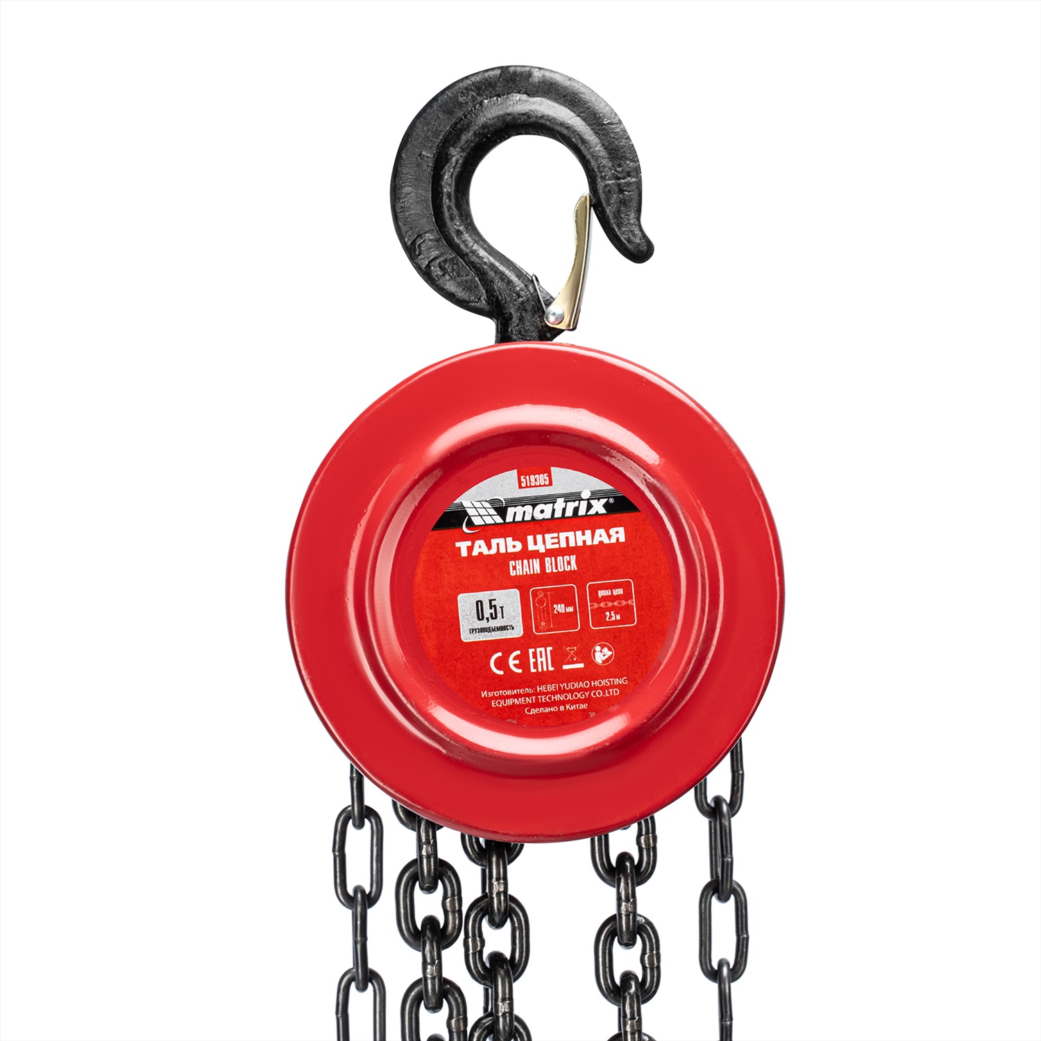 Цепная таль Matrix 519305 с расстоянием между крюками 240 мм позволяет поднимать грузы весом не более 0,5 т на высоту до 2,5 м. Простая конструкция облегчает использование. Механизм пригодится для проведения погрузочно-разгрузочных, ремонтных, монтажных работ. Преимущества